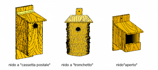 Le specie italiane più comunemente ospiti dei nidi artificiali a cassetta sono le seguenti: